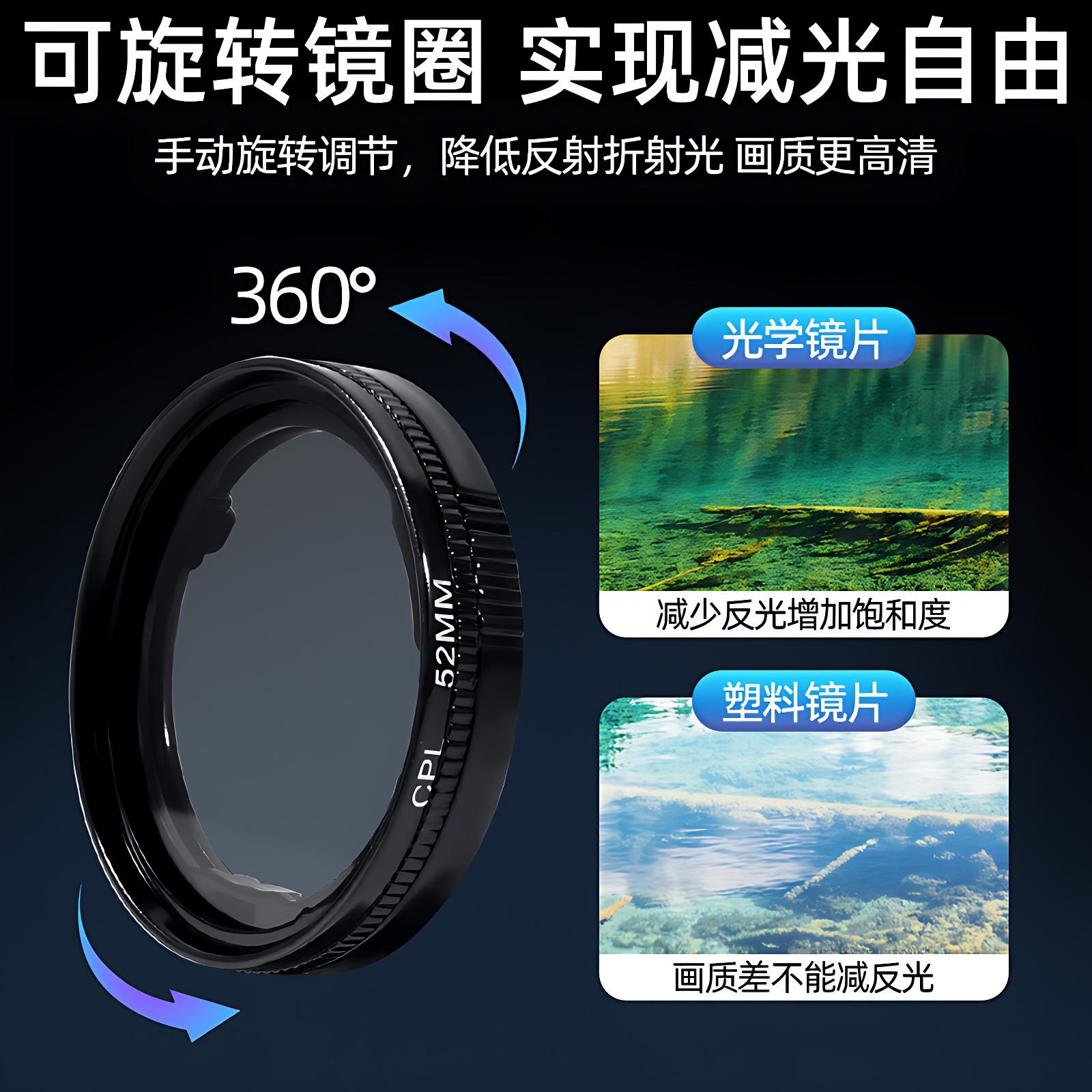 磁吸偏振镜cpl滤镜拍摄影专用镜头52mm夹片手机通用消除反光神器