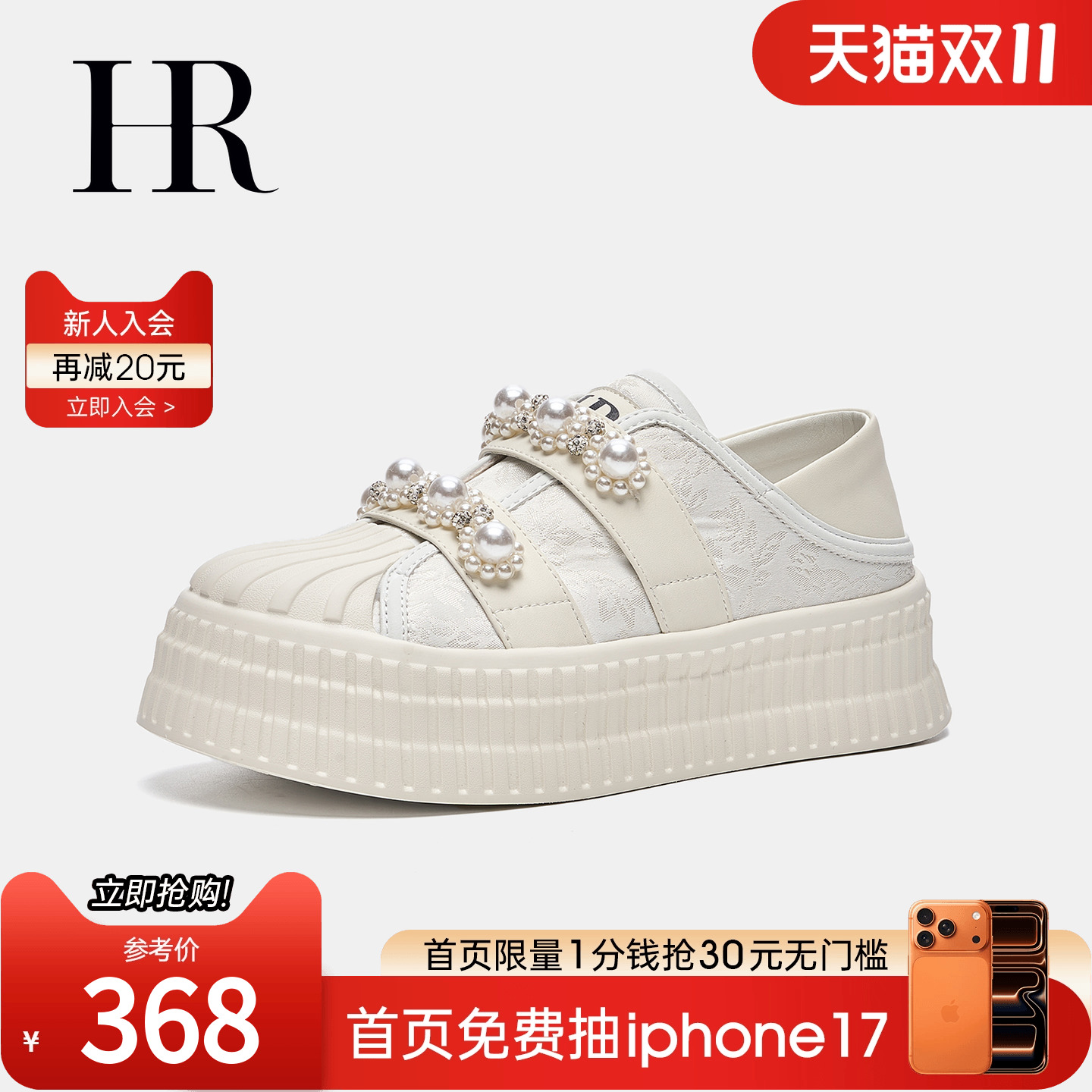 HR赫莲娜女鞋子2025秋季新款贝壳鞋厚底国风珍珠链条小众休闲板鞋