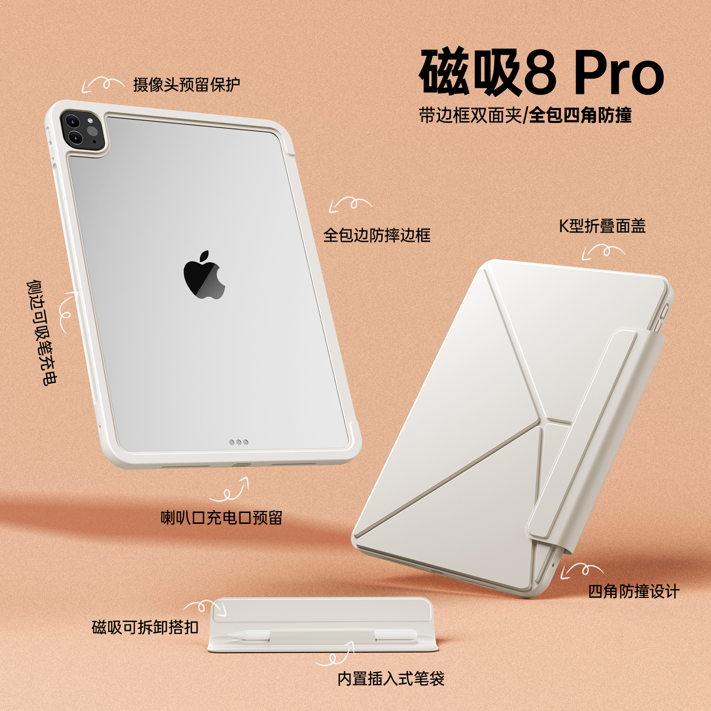 2025款iPad10代磁吸保护壳air5/6/7双面夹iPad11可拆分离边框防摔iPadpro11寸平板保护套带笔槽可拆卸高级感