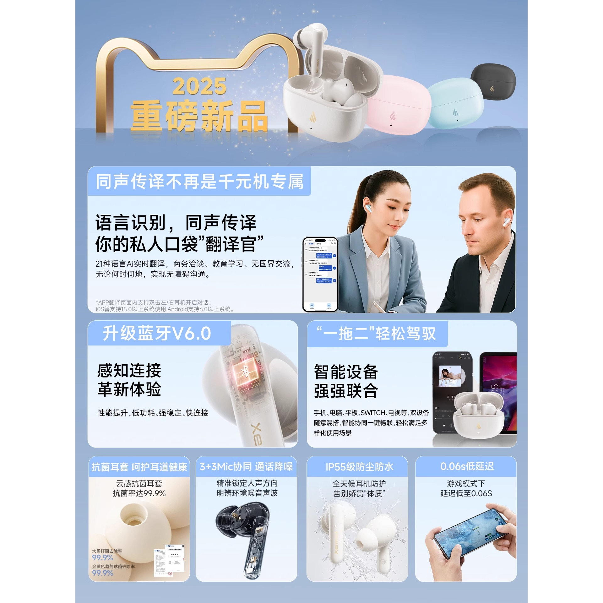 漫步者X5Evo蓝牙耳机主动降噪无线运动跑步游戏超长续航2025新款