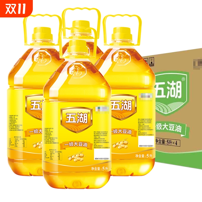 五湖一级大豆油5L*4桶食用油厨房家庭家用植物油