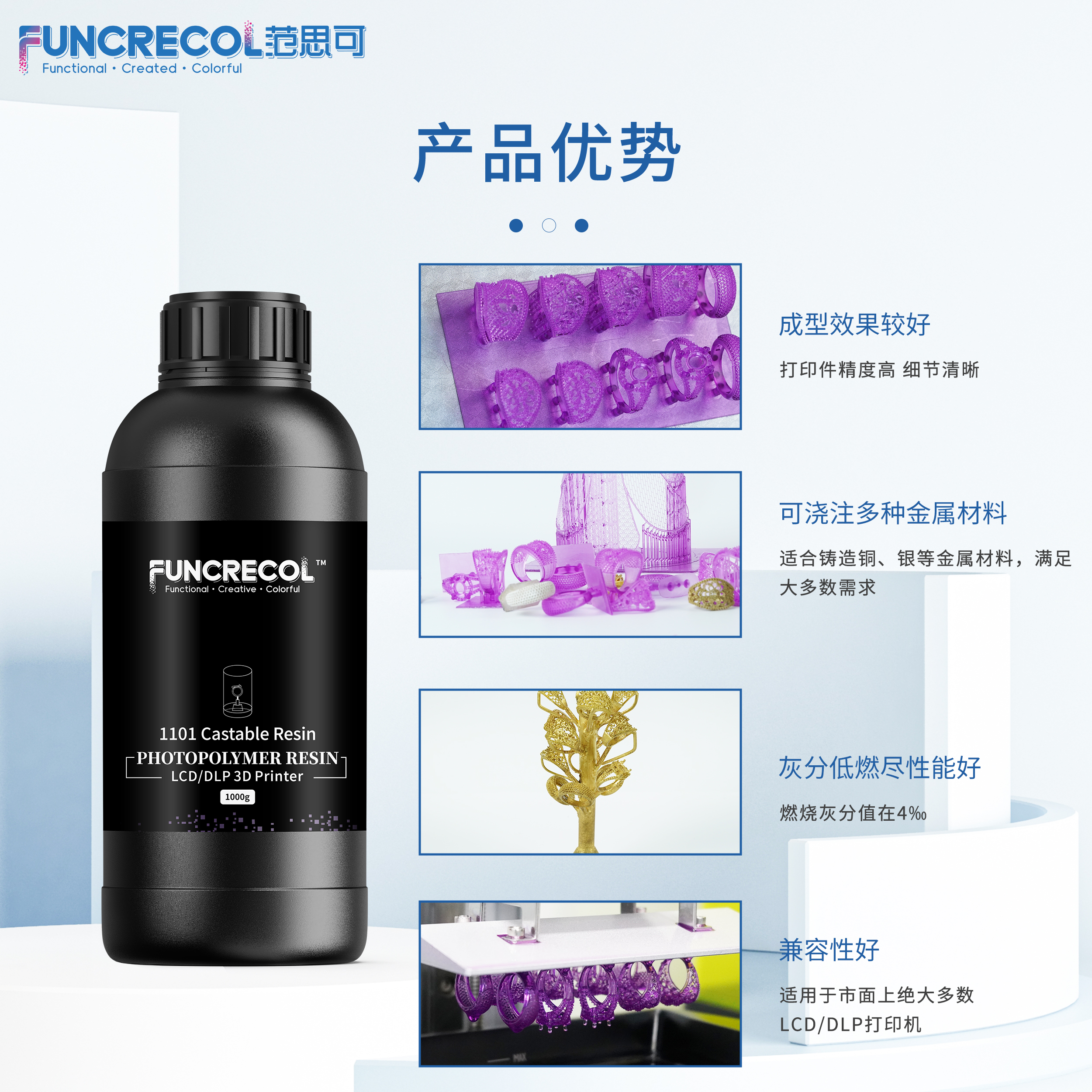 范思可失蜡珠宝铸造树脂高精度低收缩燃烧无残留通用LCD0/DLP机器3D打印机耗材适用波长405nm可支持打样