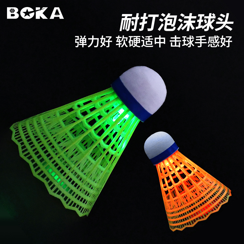 博卡发光羽毛球防风夜光尼龙球带灯耐打夜用荧光发亮夜打发光球