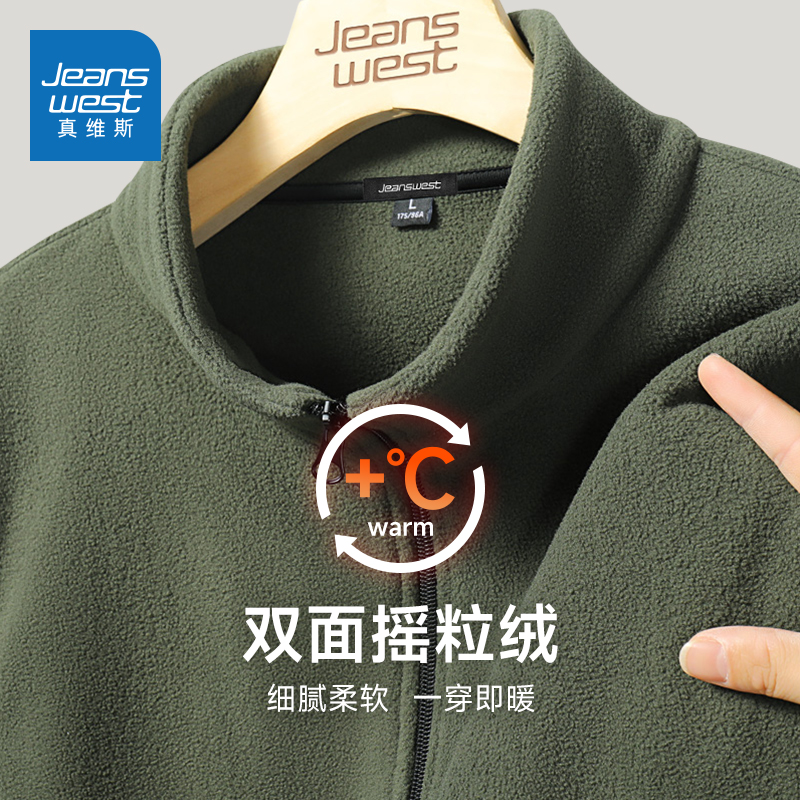 JR真维斯摇粒绒马甲男士2025秋冬季新款美式休闲男装绿色重磅上衣