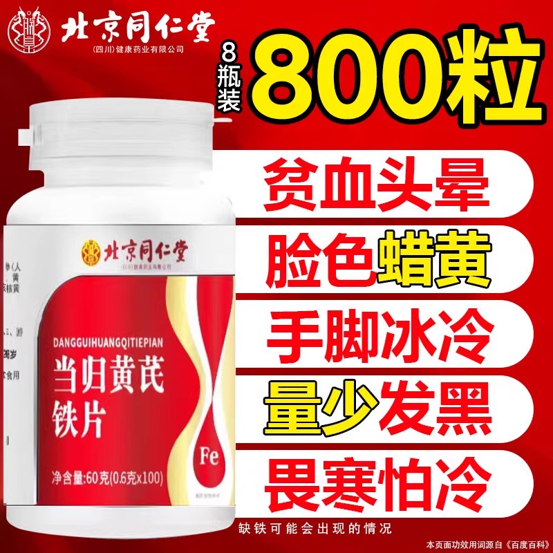 北京同仁堂当归黄芪铁片补气调补铁补血贫血女性官方旗舰店cd气血