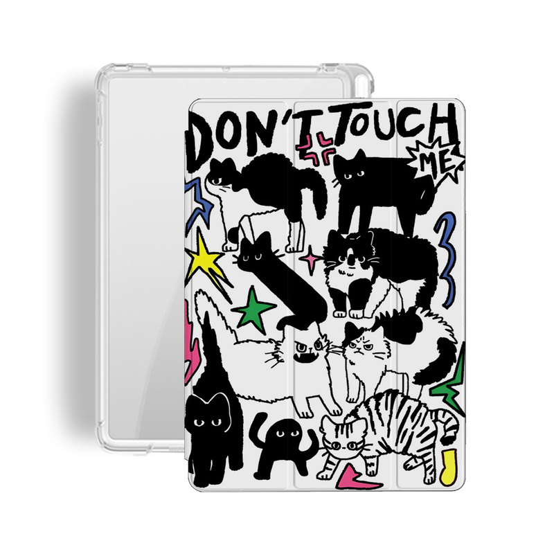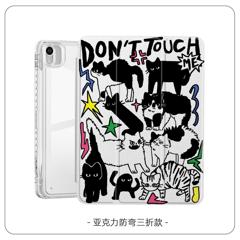 可爱奶油猫咪简约潮流艺术简笔画适用于苹果2024款iPadPro12.9/11三折保护壳air6/air5/mini6防摔气囊平板壳