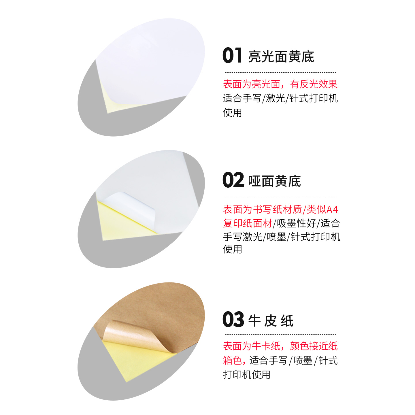 鸿固A4不干胶标签打印纸亮光面哑面彩色标签纸撕不烂喷墨合成纸书写纸牛皮纸空白喷墨激光打印内分切广告贴纸