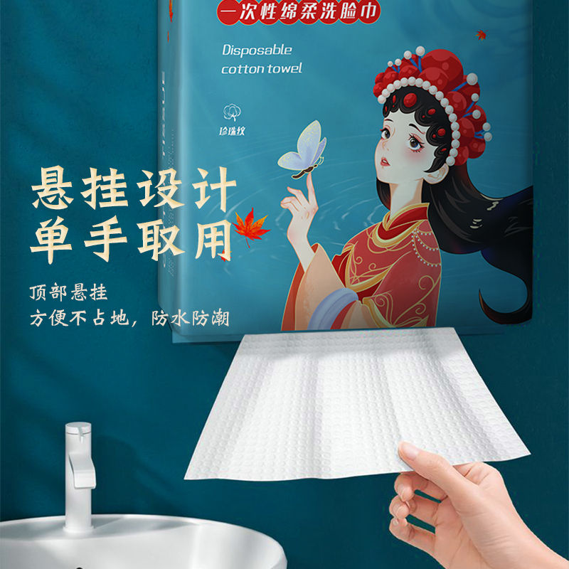 一次性洗脸巾国潮款棉柔巾珍珠纹洁面悬挂式毛巾干湿两用母婴亲肤