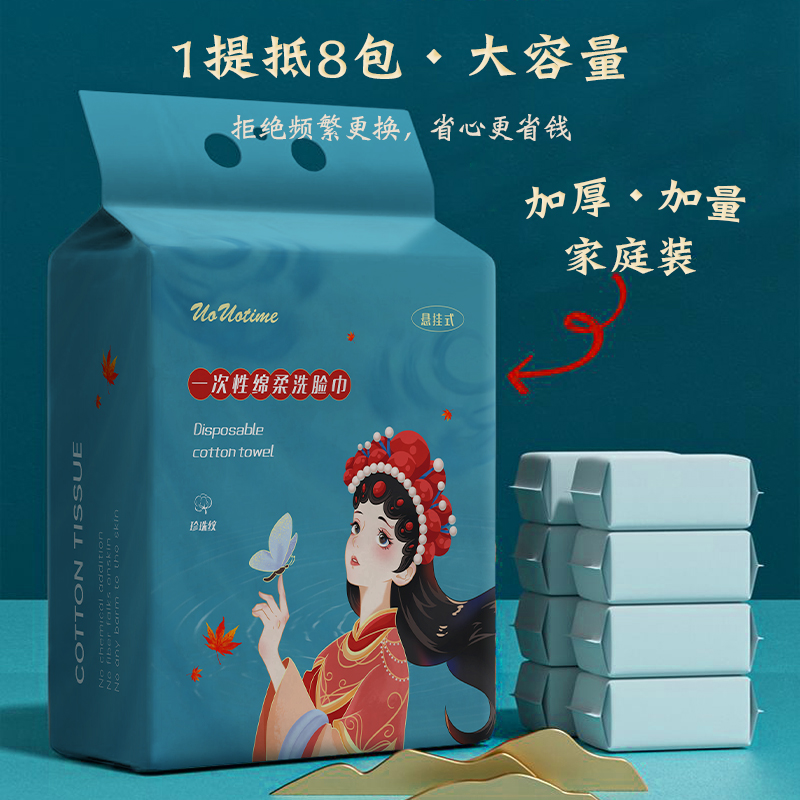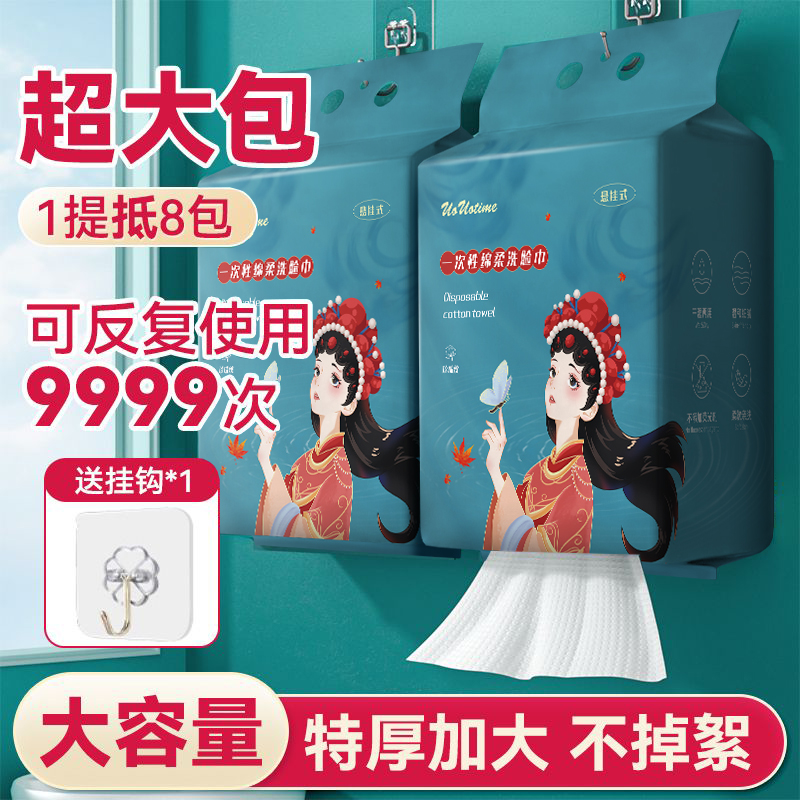 巨量装洗脸巾国潮加厚悬挂式一次性纯母婴绵柔擦脸洁面巾珍珠纹