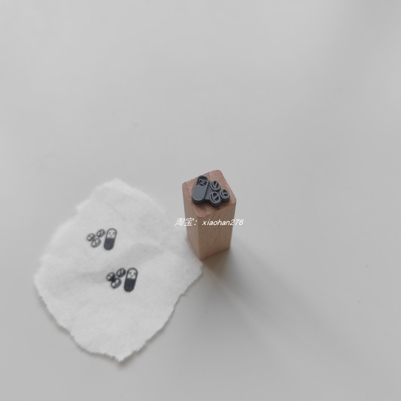医疗药丸1cm迷你手帐小印章木质打卡橡胶皮垫异形切割可定制YL001