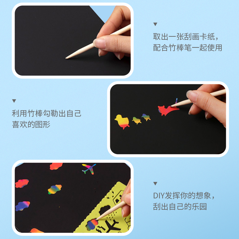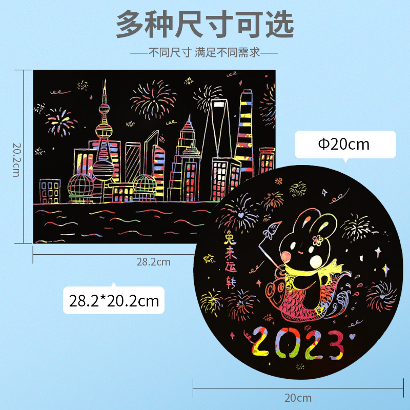 炫彩A4刮画纸圆形20张50张儿童彩色刮刮画刮画笔可涂可画可裁剪纸黑色无毒艺术美术手工DIY涂鸦纸
