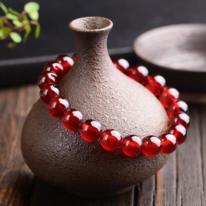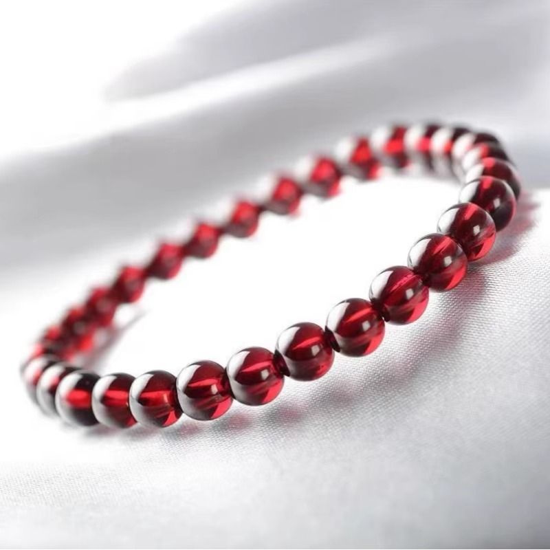 贝柚酒红石榴石手链单圈女式手串水晶宝石送母亲节日礼物紫牙乌