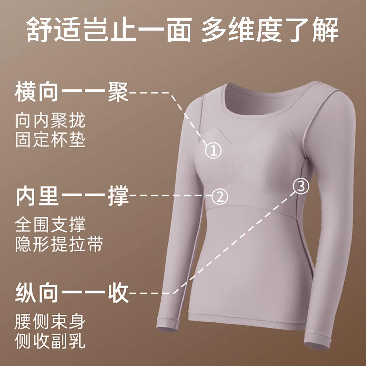 婷美秋冬隐形无痕美肤肌底衣免穿文胸蓄热保暖显瘦带胸垫打底内衣