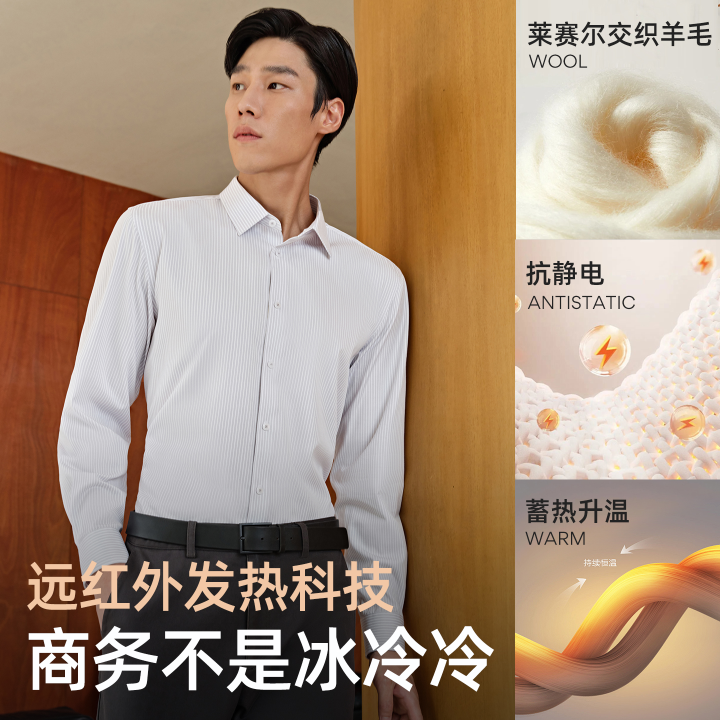 【羊毛蓄热升温】雅戈尔秋季新品商务休闲条纹保暖绒面长袖衬衫男