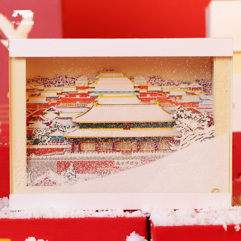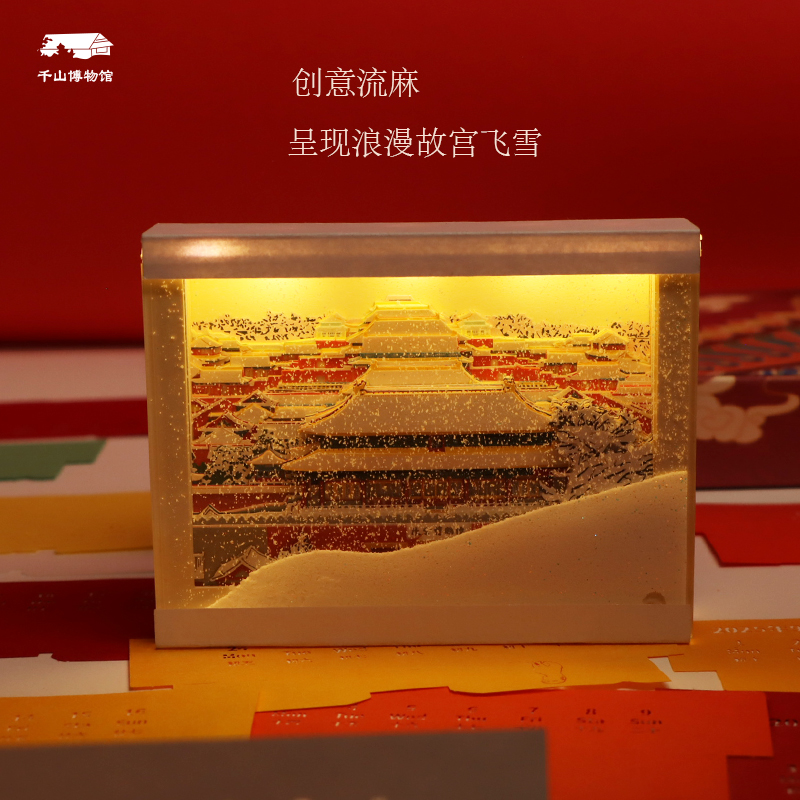 2025年3D故宫雪景创意流麻纸雕日历蛇年台历文创灯光感受下雪礼物