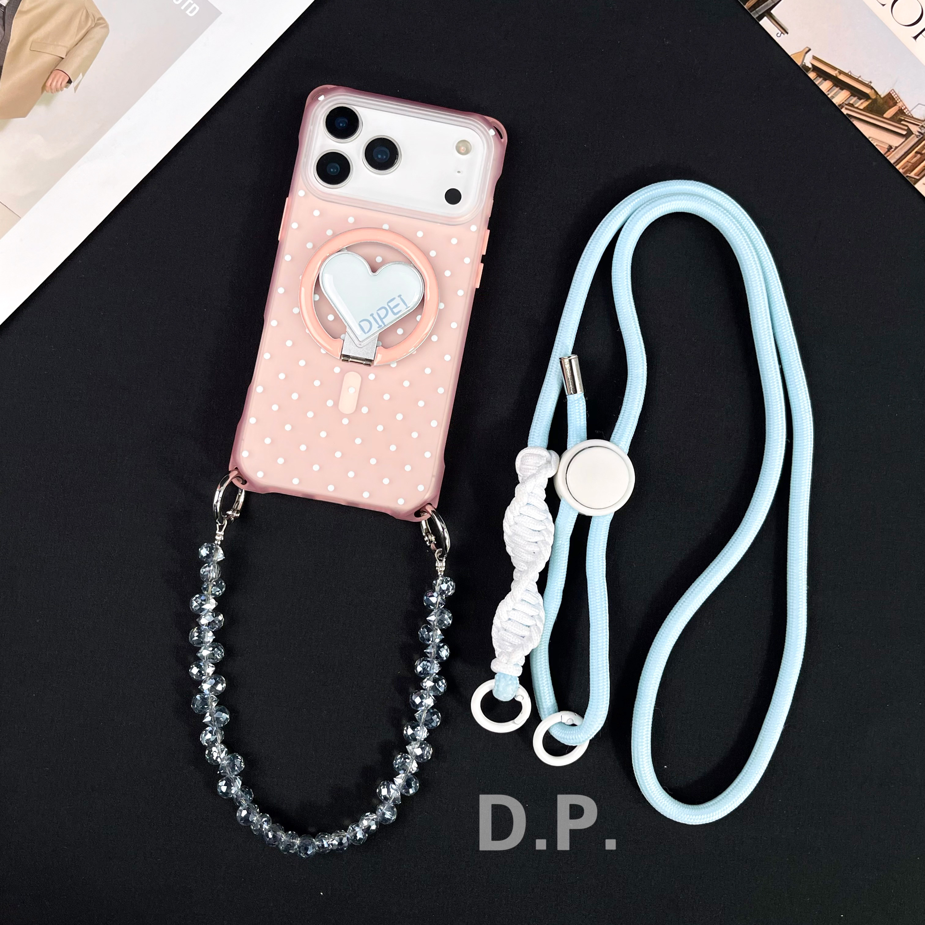 INS波点爱心磁吸支架挂绳手机壳适用于苹果iPhone17promax华为小米15荣耀斜跨侧背式挂脖带手提链条四角开孔