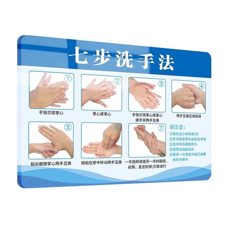 七步洗手法墙贴亚克力幼儿园医院贴纸洗手间厕所标识牌防水6六7步部洗手图步骤图流程商场诊所勤卫生间标识牌