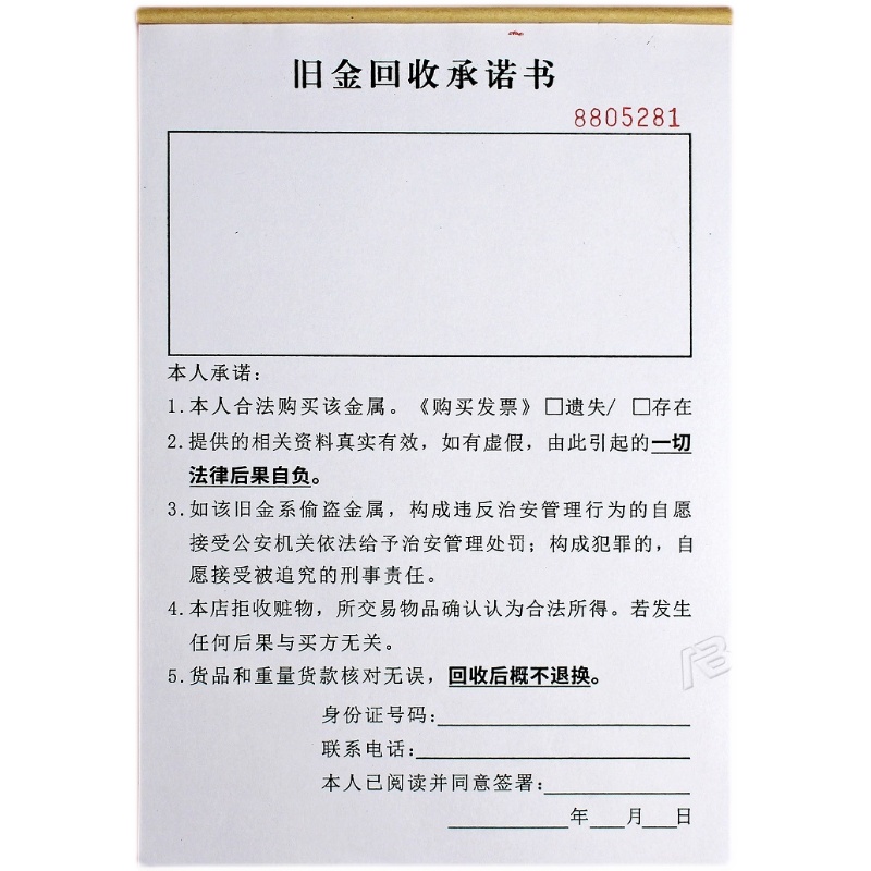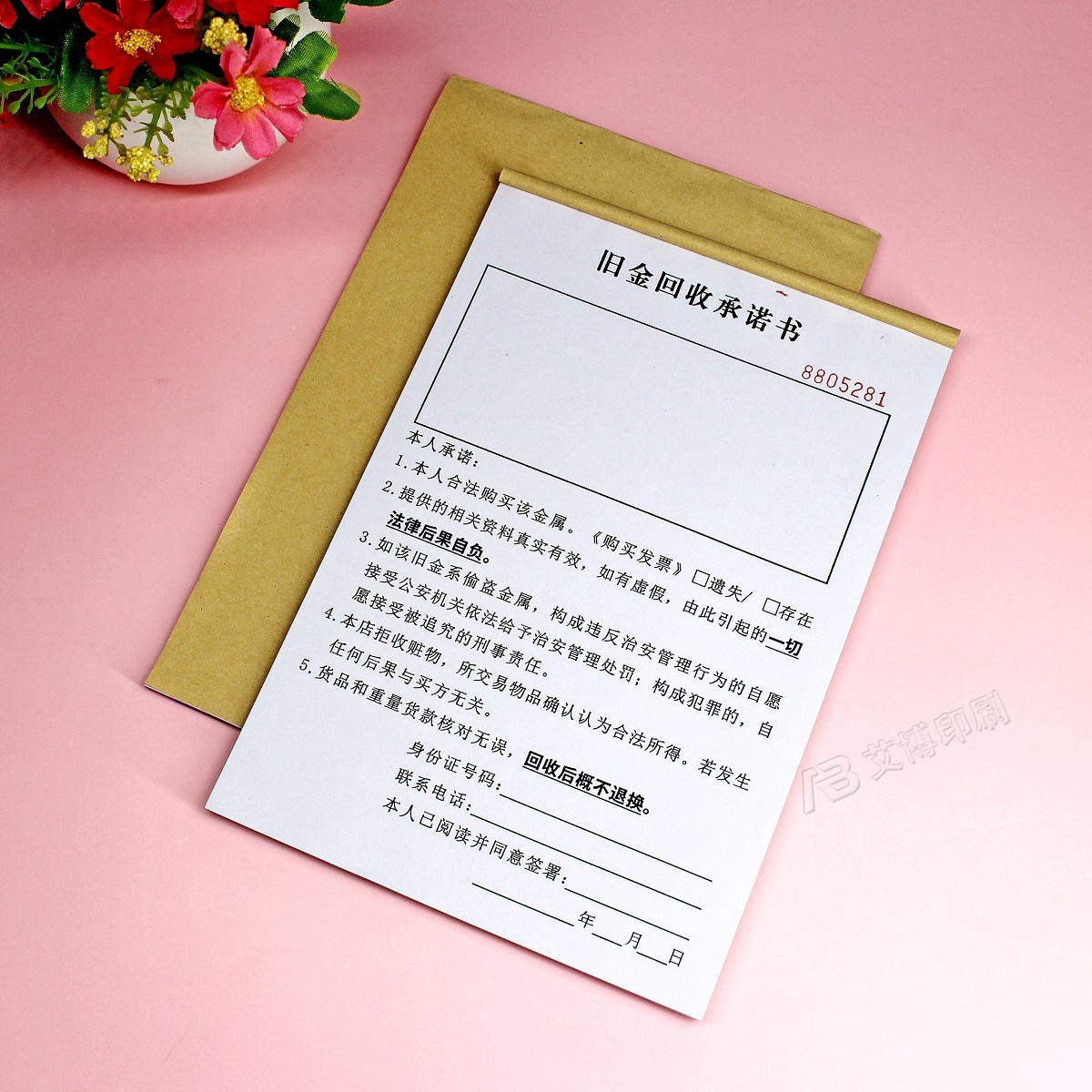 寄卖店旧金回收承诺书贵金属收购登记本一二联物品来源免责协议书