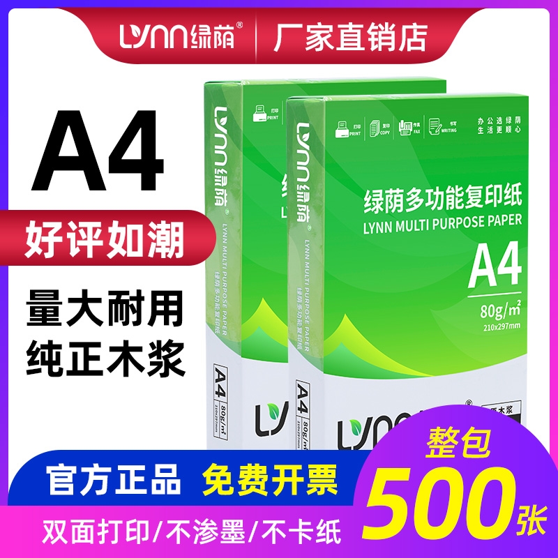 绿荫办公用纸a4打印纸70g加厚80克A4纸打印复印资料白纸草稿纸加厚整箱五包装便宜双面打印一箱批发包邮a4纸