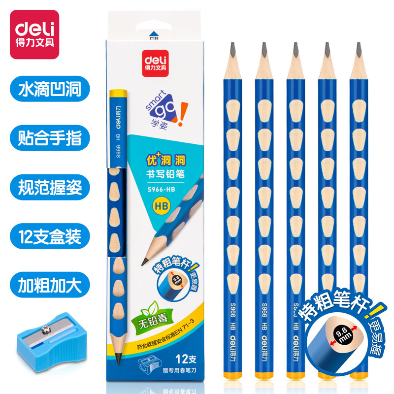 得力洞洞铅笔小学生无毒一年级专用特粗加粗洞洞笔幼儿园初学者正姿粗杆hb三角杆儿童写字2比2b考试卷笔刀二