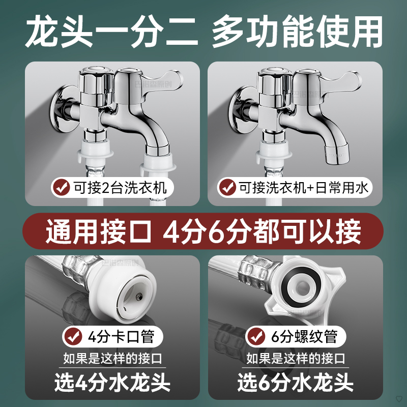 洗衣机水龙头一分二接头专用一进二出三通双头双出水家用全铜加长