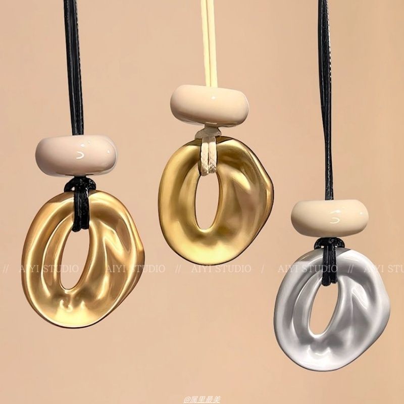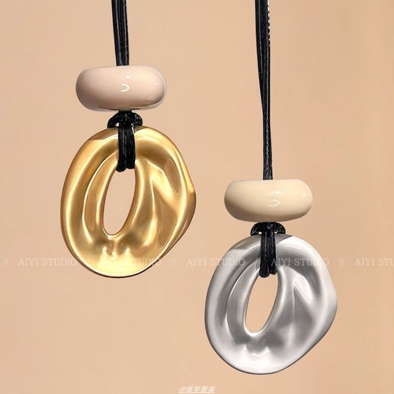 韩系不规则哑光吊坠项链女小众高级感配饰长款毛衣链锁骨链颈链子