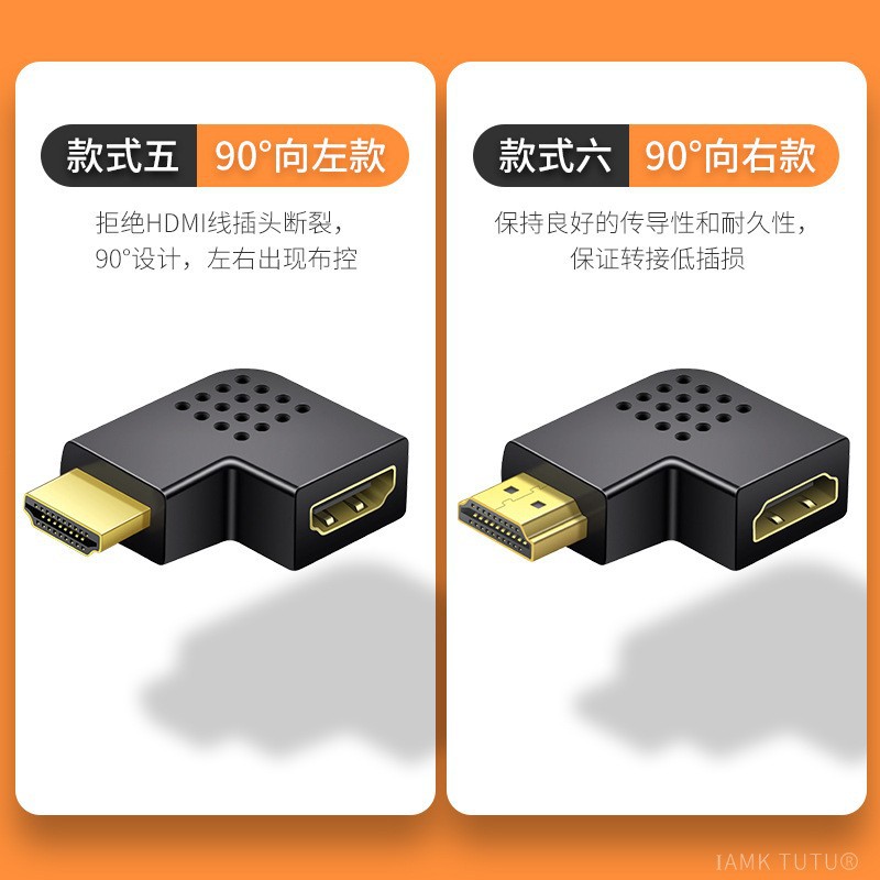 hdmi转接头公对母左右弯头换高清线转弯接口90度hdmi公转母转接头