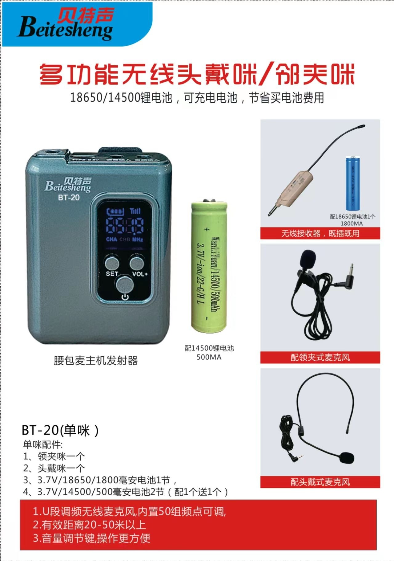 贝特声BT20BT21无线话筒麦克风会议扩音耳挂式耳麦领夹咪直播唱歌