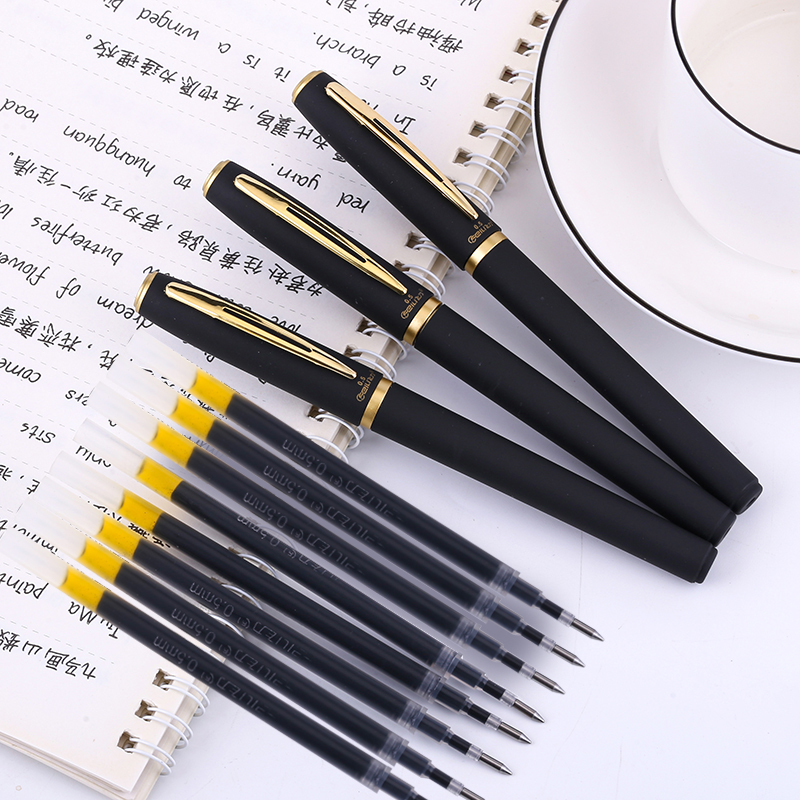 超大容量签字笔1.0/0.7/0.5mm商务签名笔子弹头硬笔书法练习碳素笔加粗大笔画水笔黑色学生练字中性笔办公