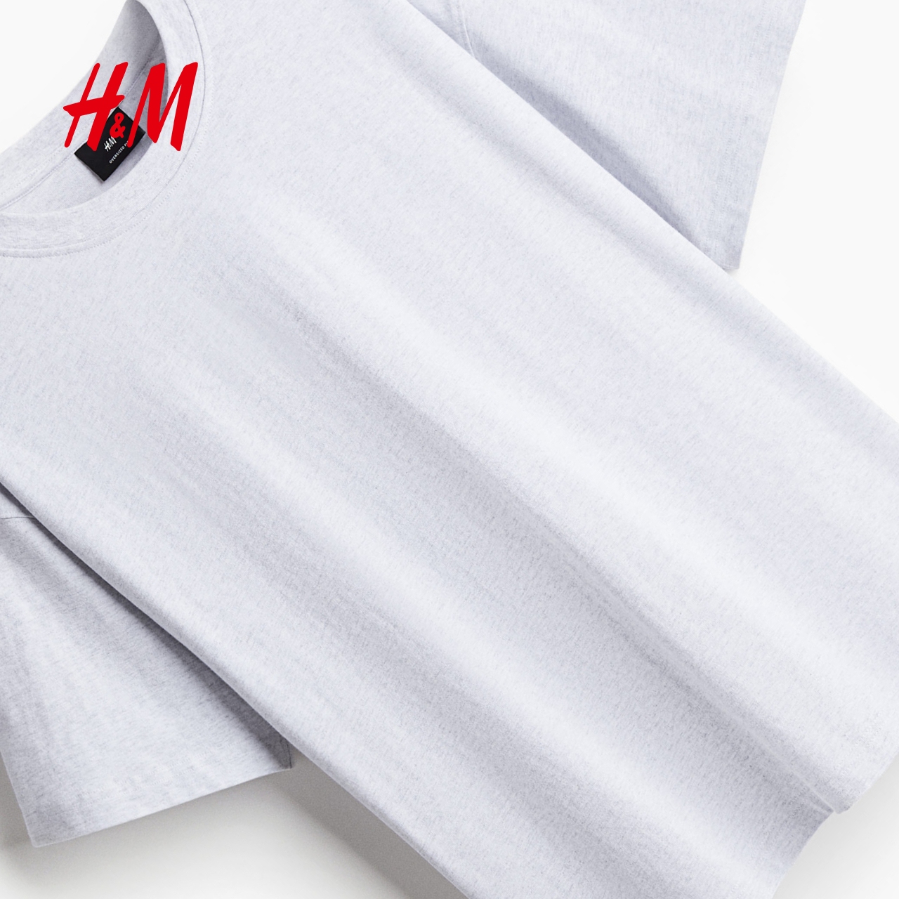 HM男装女装T恤秋季简约重磅时尚舒适落肩大廓形短袖上衣1035207