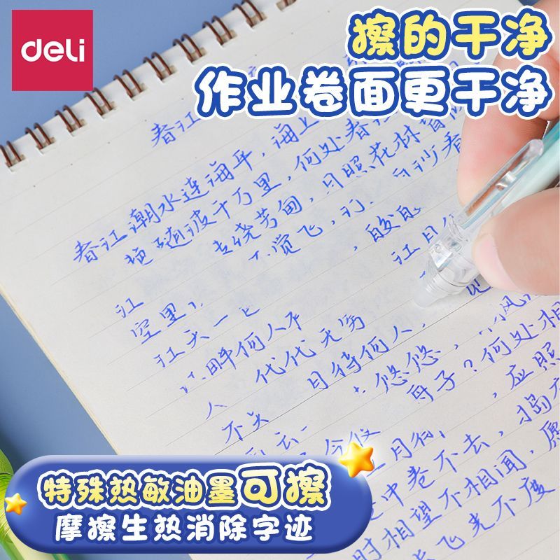 得力小海绵软握热可擦笔3-5年级中性笔芯摩易檫磨魔力按动式可擦水笔可爱卡通男女小学生专用黑色晶蓝色正品