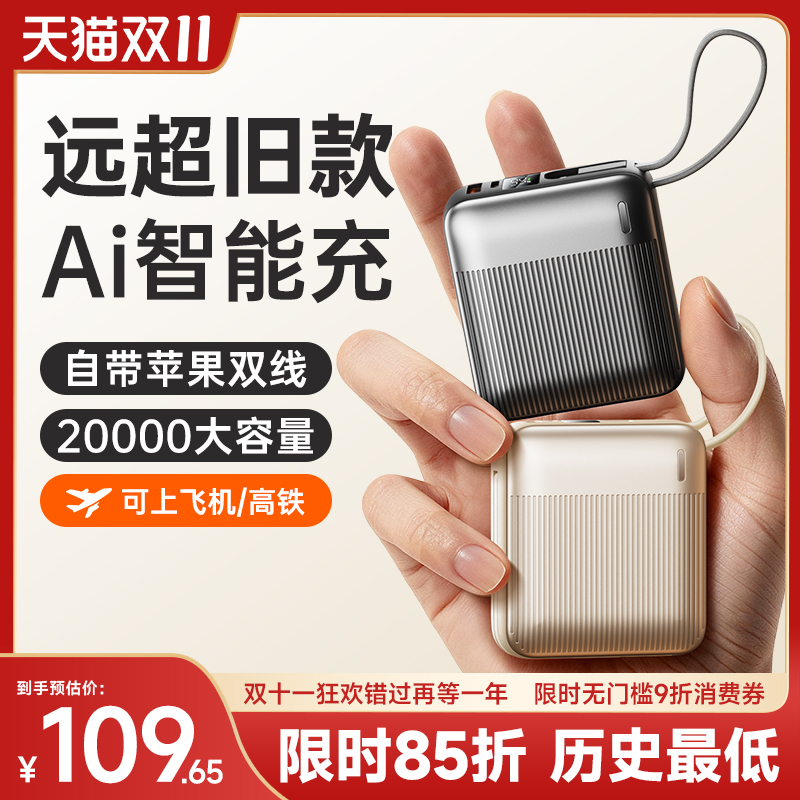 【充电宝3C认证可上飞机】政府补贴15%品胜mini小相机2025新款迷你超薄小巧便携自带线快充适用华为苹果小米