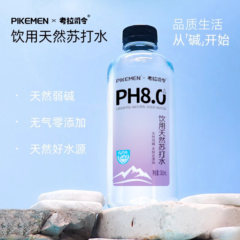 天然苏打水整箱24瓶*382ml碱性水运动无糖非孕妇可饮用弱碱性司令