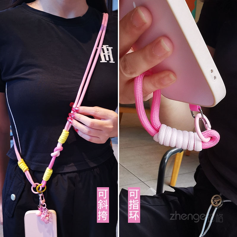 虹客手机挂绳女斜挎长款拼色二用指环小吊绳户外旅游登山出行防丢电话套壳包挂编织可侧背肩带绳结实耐用新品