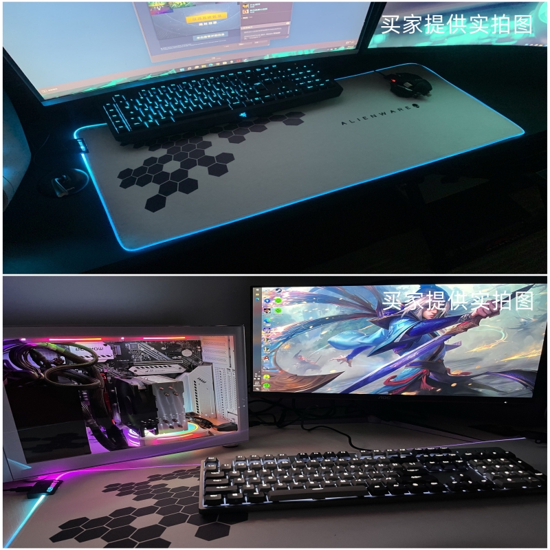 Alienware外星人超大号鼠标垫RGB发光天然橡胶织物布软垫电脑桌垫