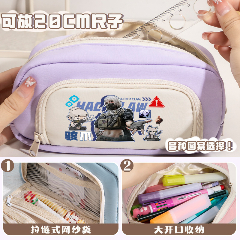三角洲行动小学生男孩一二三到六年级专用大容量笔袋高颜值文具盒初中男生设计感小众二次元风简约文具收纳袋