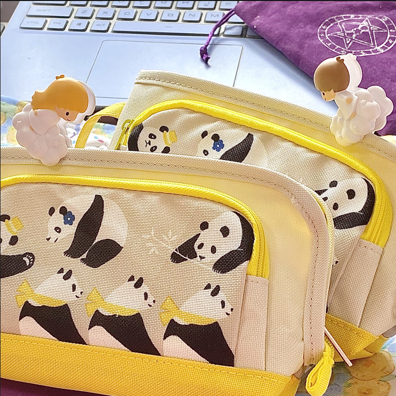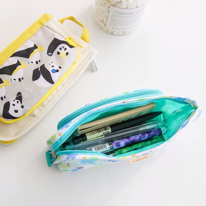日本KOKUYO国誉绝版停产小熊猫笔袋卡通可爱大容量双口袋文具笔盒