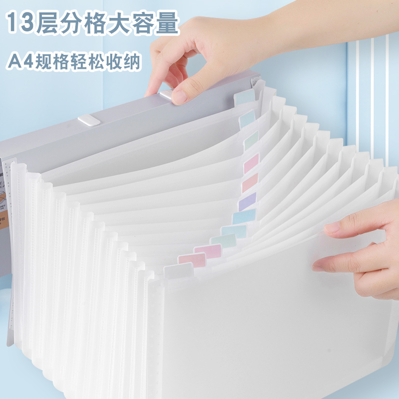 得力风琴包大容量可立式手提13格可绅缩文件夹资料收纳神器学生试卷分类插页式拉伸式桌面a4卷子夹风琴文件袋