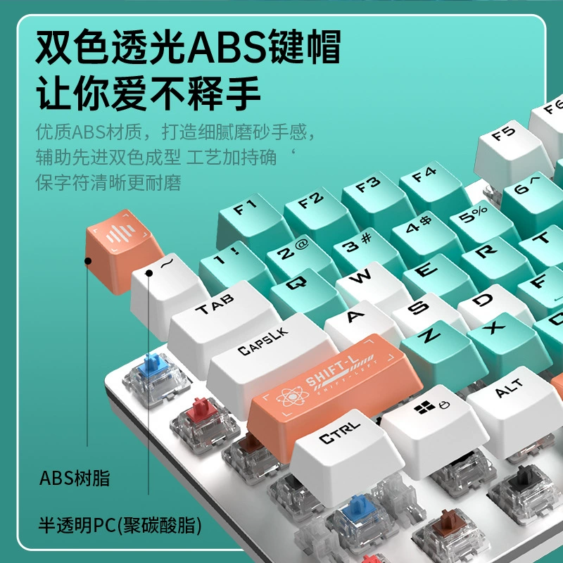 RKR87机械键盘有线电脑办公茶青轴电竞游戏银轴线性轴热插拔白色