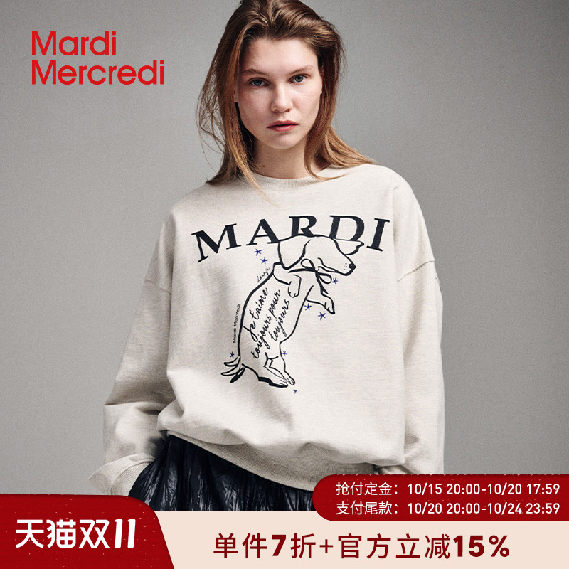 MardiMercredi摇尾珍珠小狗卫衣腊肠狗线条休闲宽松纯棉上衣新款