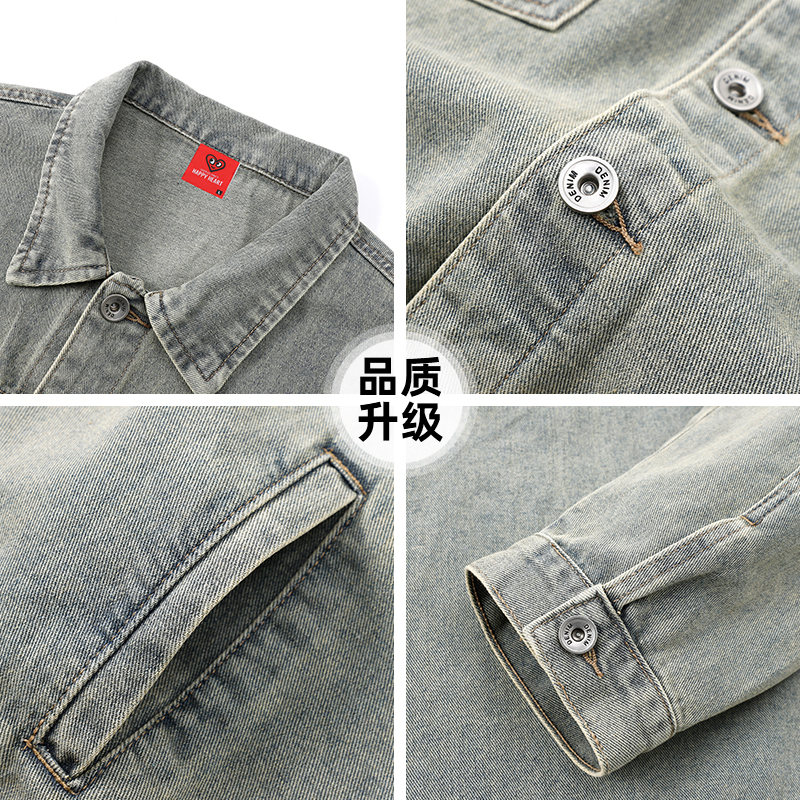 2025春秋冬新款防烫浅色拼接工装休闲宽松大码夹克牛仔衣外套男