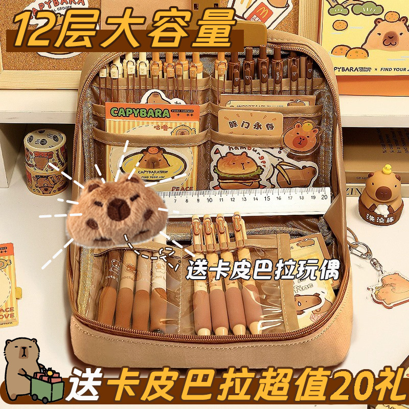卡皮巴拉笔袋12层高颜值笔袋小众不撞款男女孩大容量文具袋