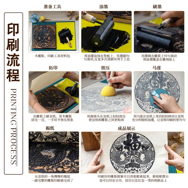蛇年福字木版雕版年画福字雕版印刷术diy手工材料包活动拓印ax60