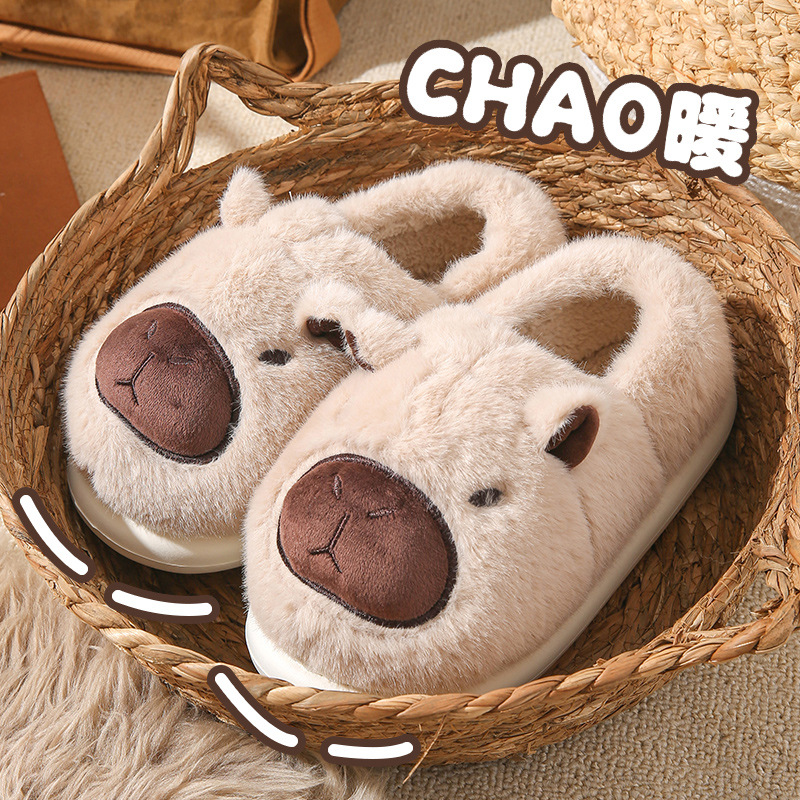 卡皮巴拉棉拖鞋女可爱冬季男女情侣外穿防滑居家保暖包跟棉鞋秋千