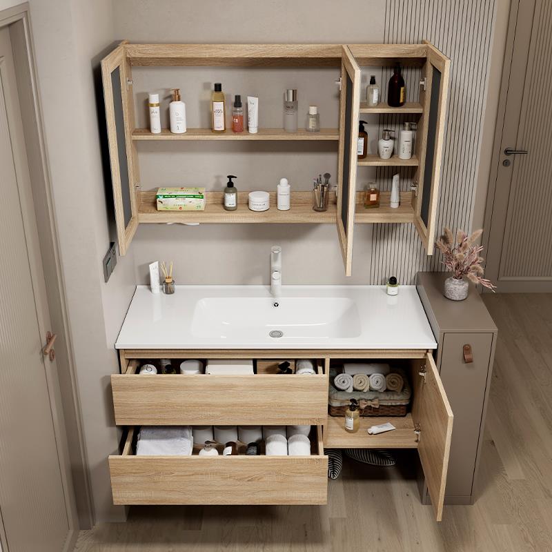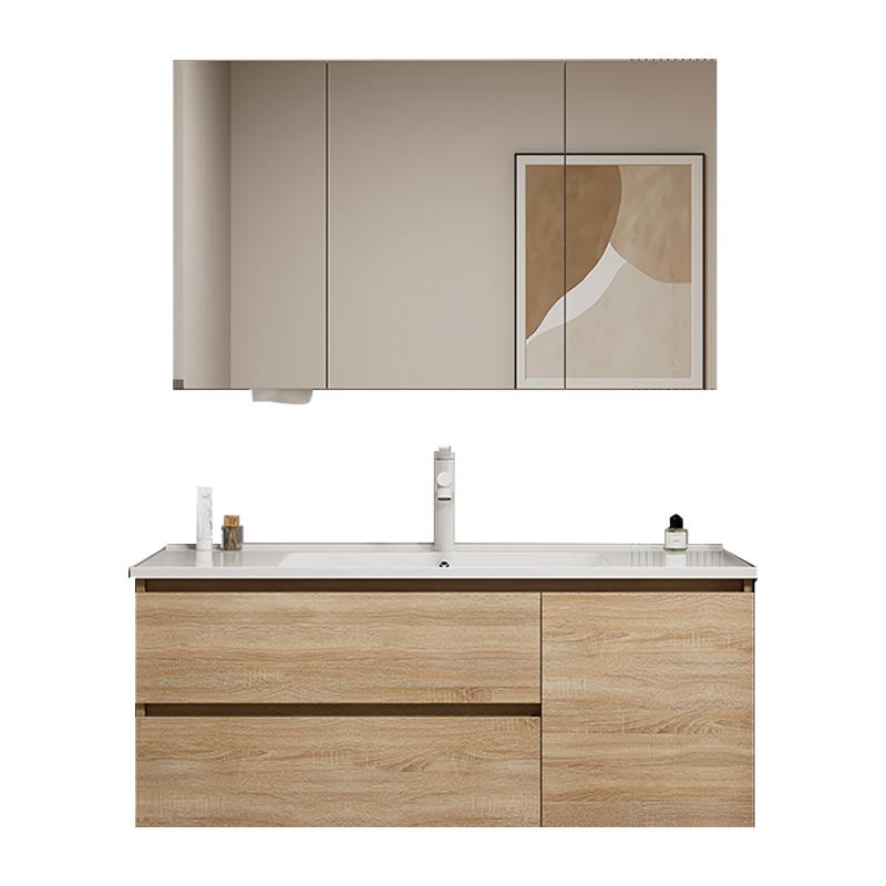 陶瓷一体盆75/85/95/105/115厘米洗漱台原木色浴室柜定制尺寸定做饰品