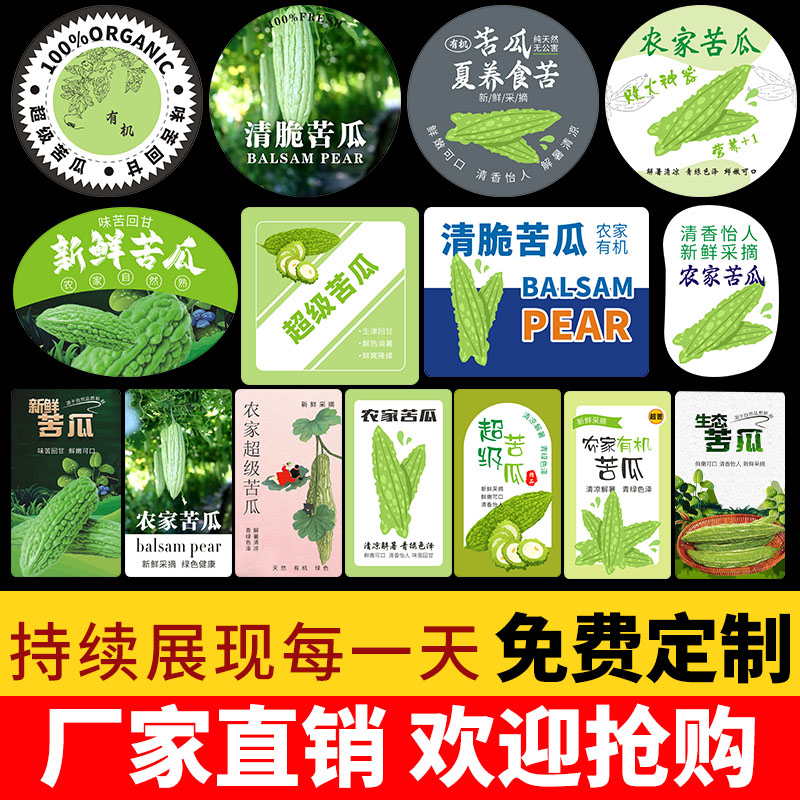 精品苦瓜标签贴纸有机绿色蔬菜黄瓜西红柿豆角芦笋不干胶标签定制