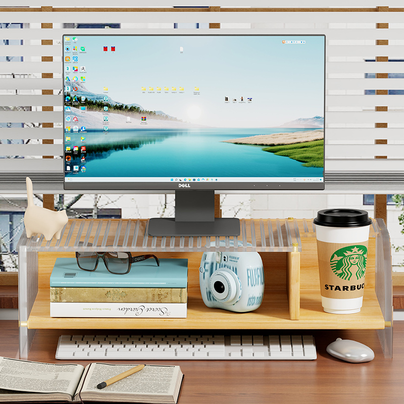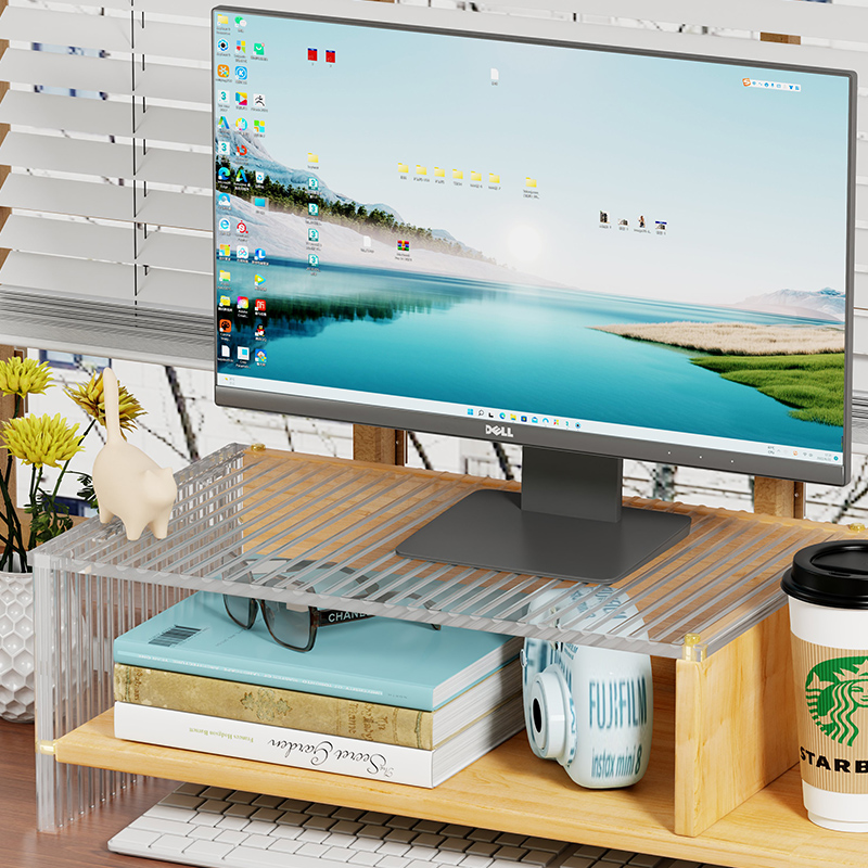 电脑增高架笔记本抬高架办公室工位收纳架亚克力桌面多功能置物架