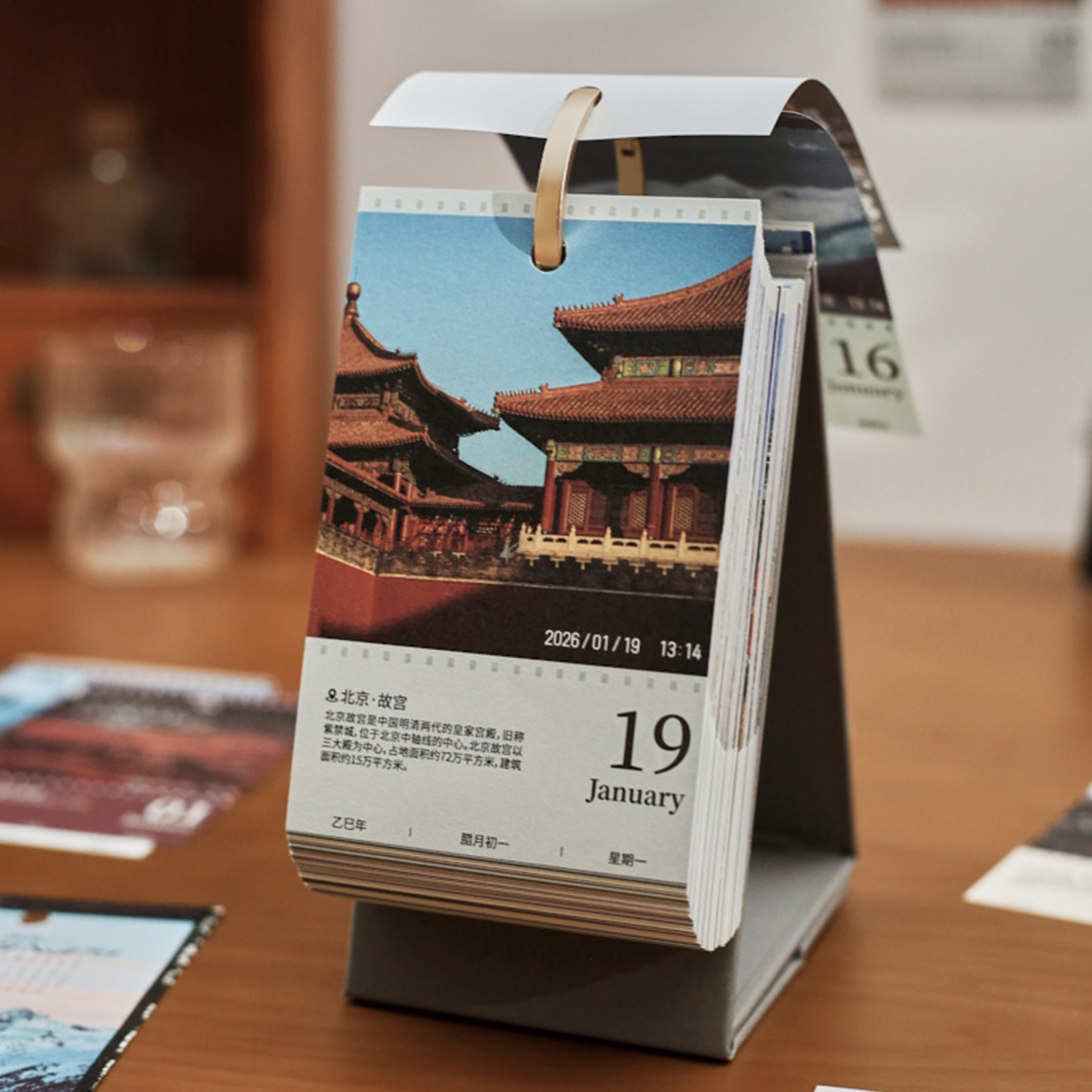 2026年帧光漫新款旅旅行日历 ins风景文艺励志趣味桌面台历摆件
