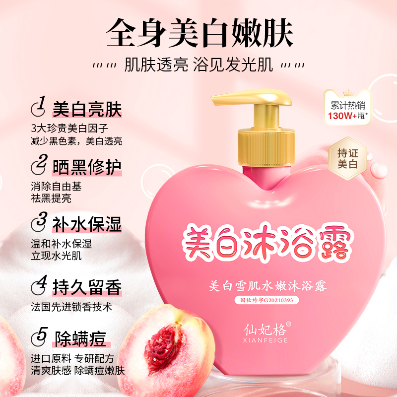 仙妃格美白沐浴露水蜜桃持久留香烟酰胺止痒女男士官方正品香水
