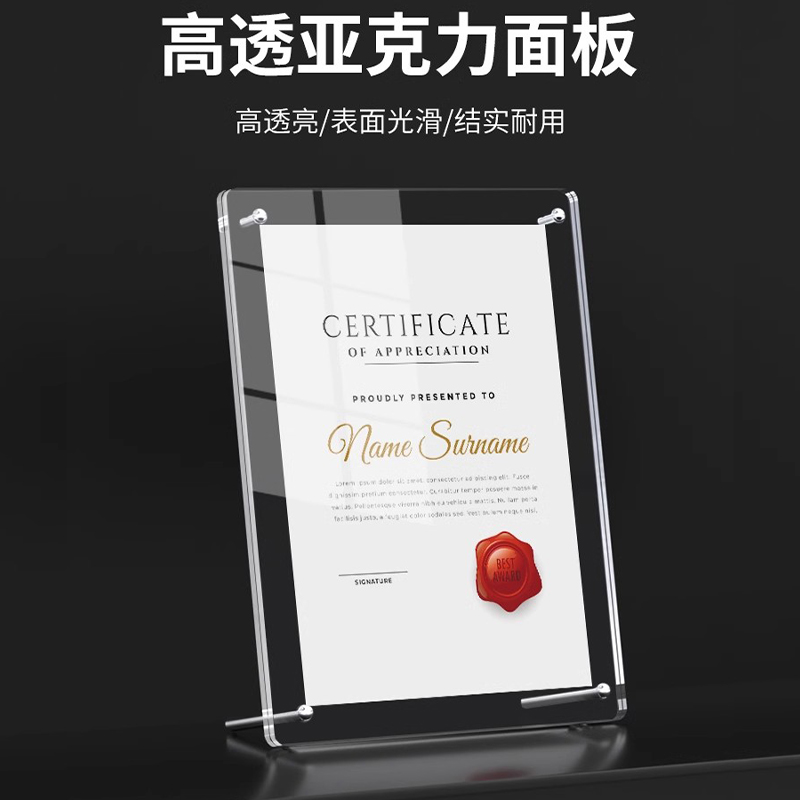 台卡展示牌 a4授权牌亚克力台卡架l型立牌广告钉桌牌证书执照展示架台式桌签架透明台牌螺钉台卡架广告牌定制